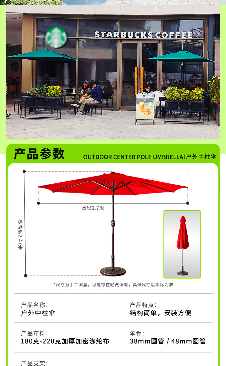 * 表示必填采购:带灯中柱伞 别墅咖啡厅 室外防晒用 结构稳固 可定制