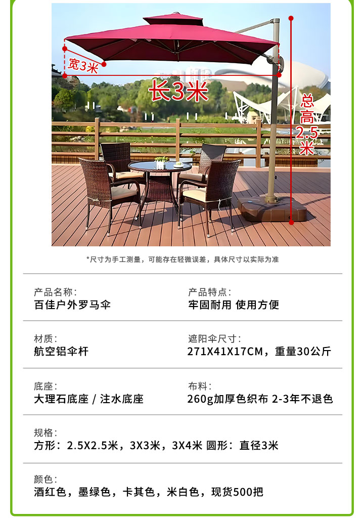 可选规格:方伞:2.5x2.5、3x3圆伞:3米