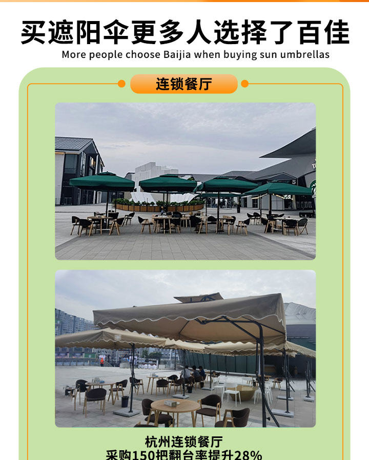 杭州百佳遮阳蓬有限公司公司创建于2007年2月22日,主要生产各类折叠帐篷,太阳伞及编藤户外家具,年生产量16万套帐篷,13万把广告太阳伞,3.5多万张编藤系列桌椅户外家具等。年销售额4000万元,两家公司及驻外分公司总占地面积25亩地,2.3万平方米,在职工人135人,其中技术人员16人及20余人销售团队,业务遍及全国及部分欧美国家,全国营销大师,顾佳公司产品推广董事长兼总经理顾克东先生,始终以客户需求为导向,以股东利益为追求,与员工共同成长为已任,为满足顾客售前售后服务而努力奋斗。