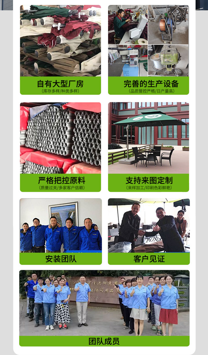 公司创建于2007年2月22日,主要生产各类折叠帐篷,太阳伞及编藤户外家具,年生产量16万套帐篷,13万把广告太阳伞,3.5多万张编藤系列桌椅户外家具等。年销售额4000万元,两家公司及驻外分公司总占地面积25亩地,2.3万平方米,在职工人135人,其中技术人员16人及20余人销售团队,业务遍及全国及部分欧美国家,全国营销大师,顾佳公司产品推广董事长兼总经理顾克东先生,始终以客户需求为导向,以股东利益为追求,与员工共同成长为已任,为满足顾客售前售后服务而努力奋斗。