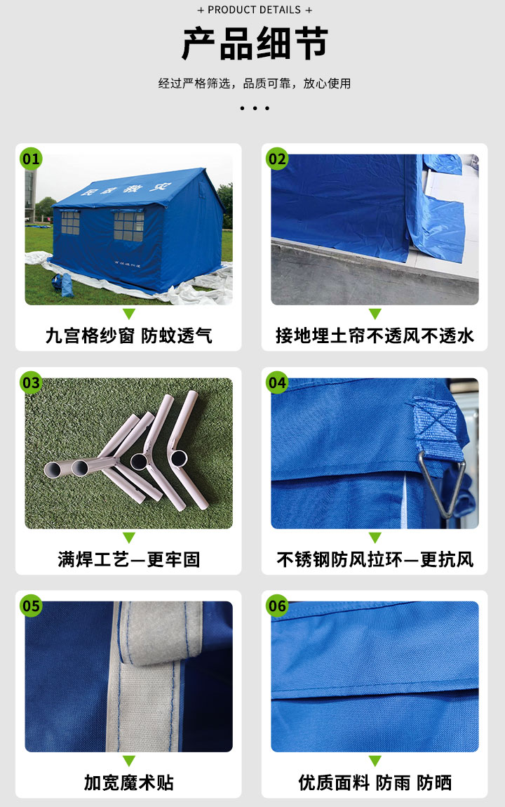 指挥救灾帐篷 应急救援物资 撑杆坚固稳定抗风耐用